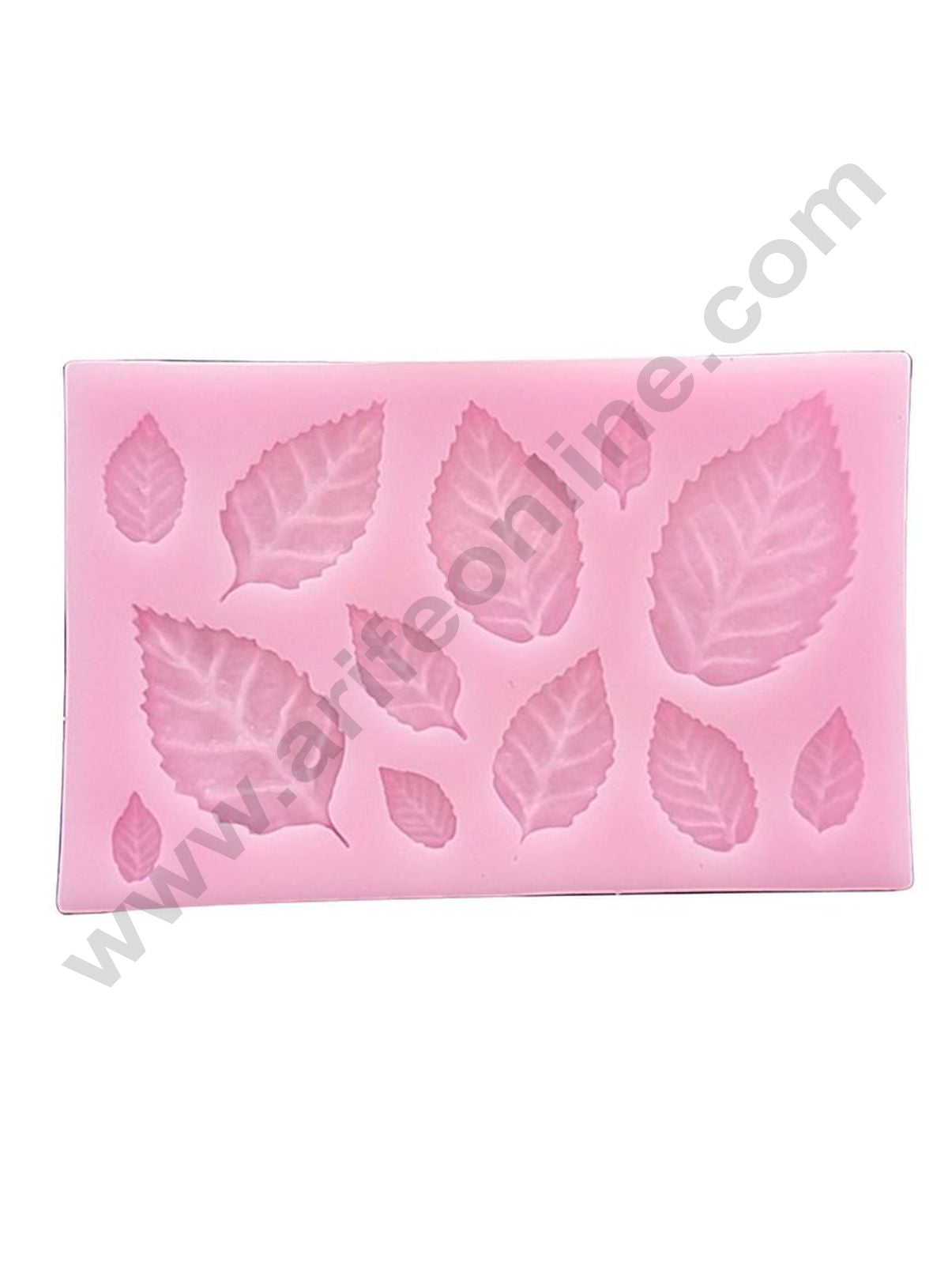 Cake Decor Silicone 12 Cavity Veined Leaves Shape Pink Fondant Marzipan Mould