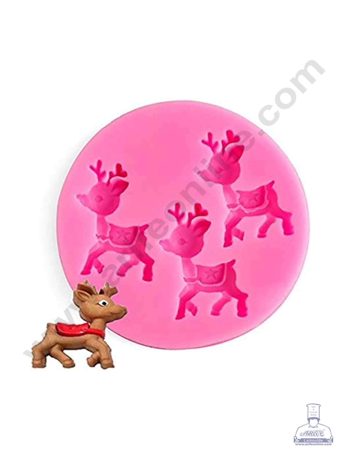 CAKE DECORβ’ Silicone 3 Cavity Mini Cute Deer Shape Pink Fondant Marzipan Mould