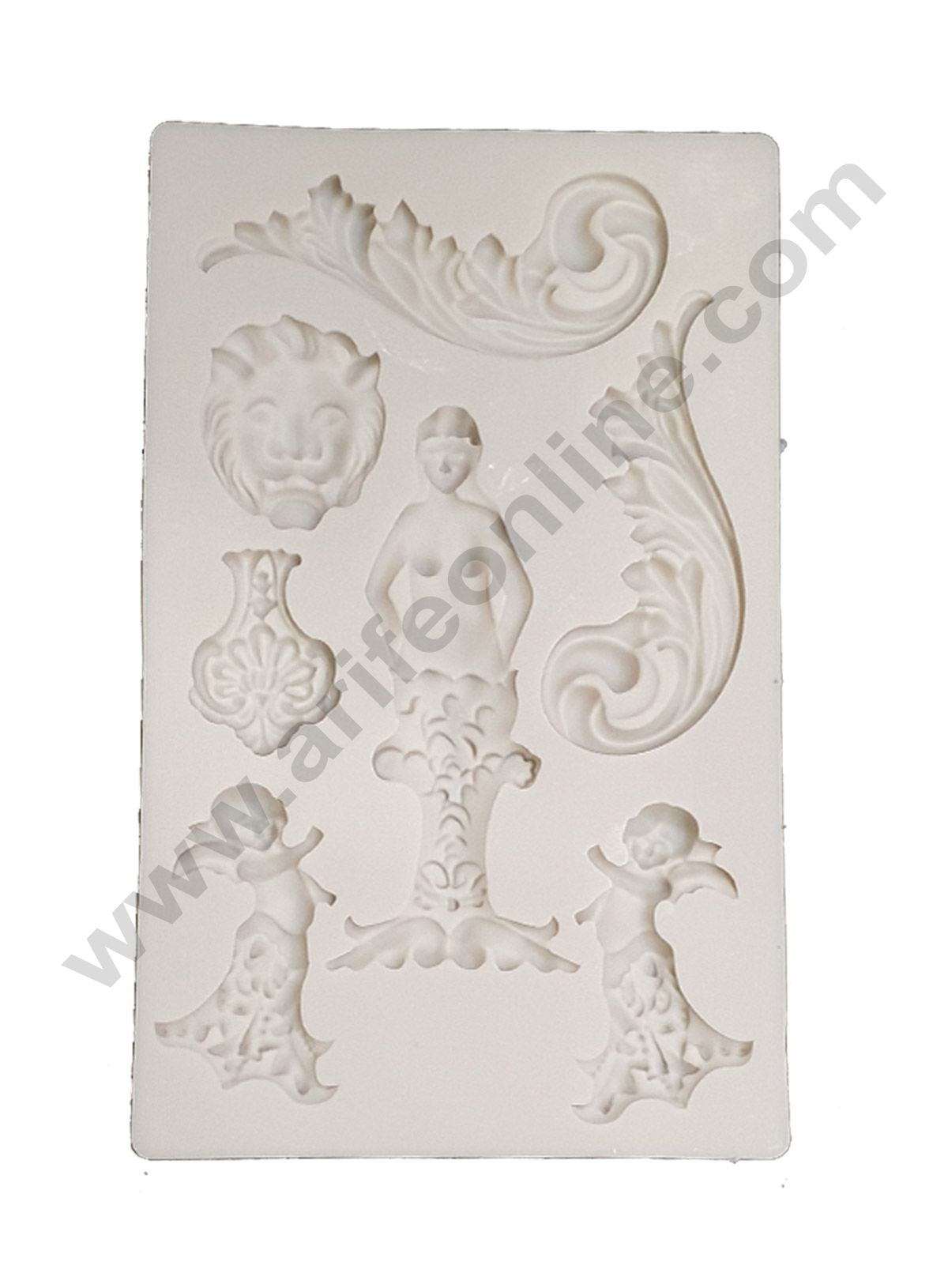 Cake Decor Silicone 7 Cavity Vintage Frame With Mermaid And Lion Face Fondant Mold Cake Decorating Mould