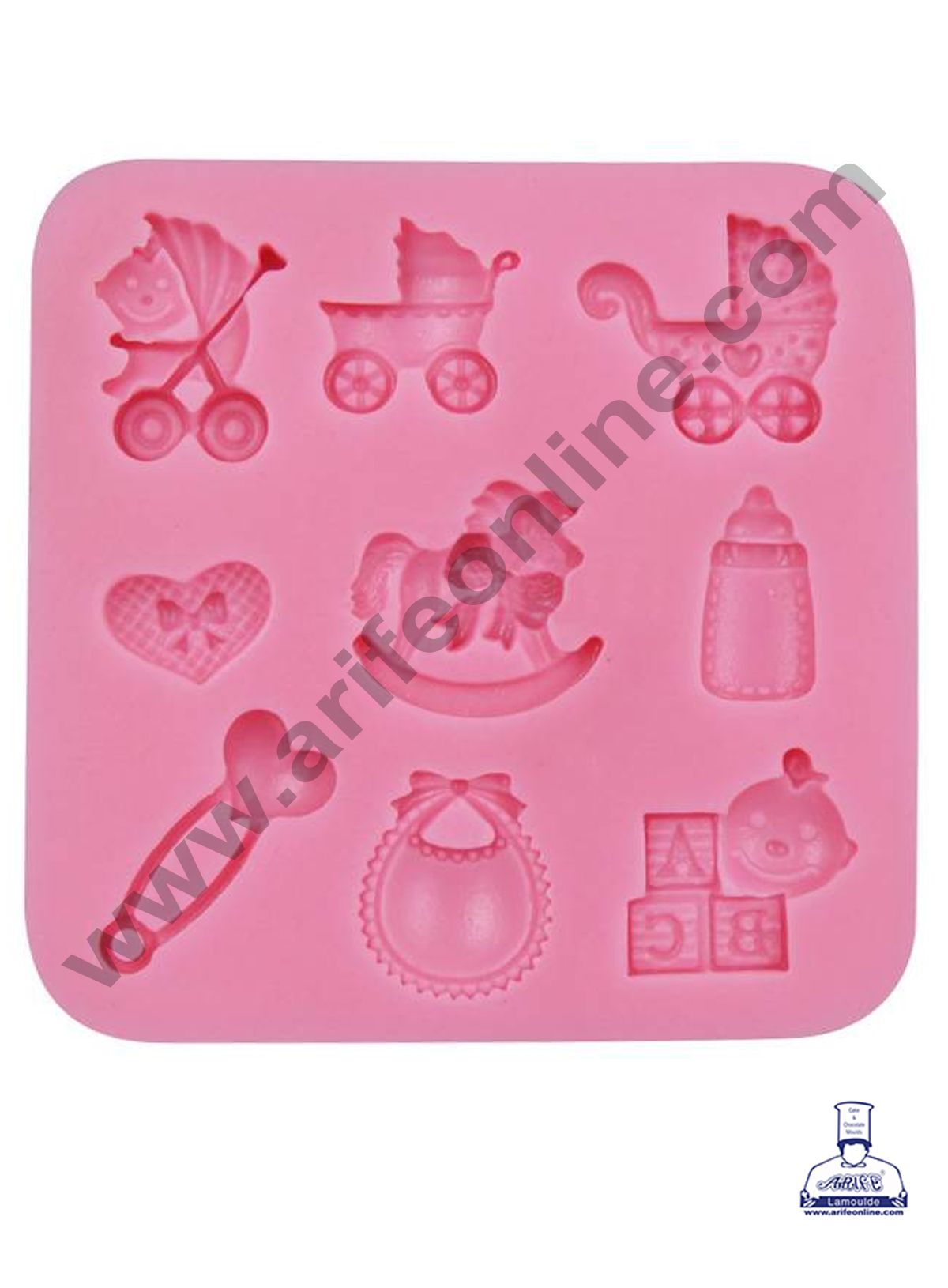 Cake Decor Silicone 9 Cavity Baby Cart Baby Bibs Shape Pink Fondant Marzipan Mould Made of silicone material, tasteless, non-toxic, flexible, dust resistant, reusable, non-stick and easy to clean. Suitable for making cake decoration, bread, mousse, jelly, prepared food, chocolate, etc. Be safe to use in ovens, microwaves, dishwasher, and refrigerator. Silicon Marzipan moulds are…