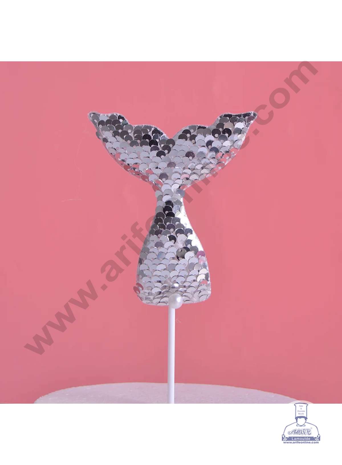 CAKE DECOR™ Silver Sequin Mermaid Tail Cake Topper Cake Decoration (SB-SMT-Silver)