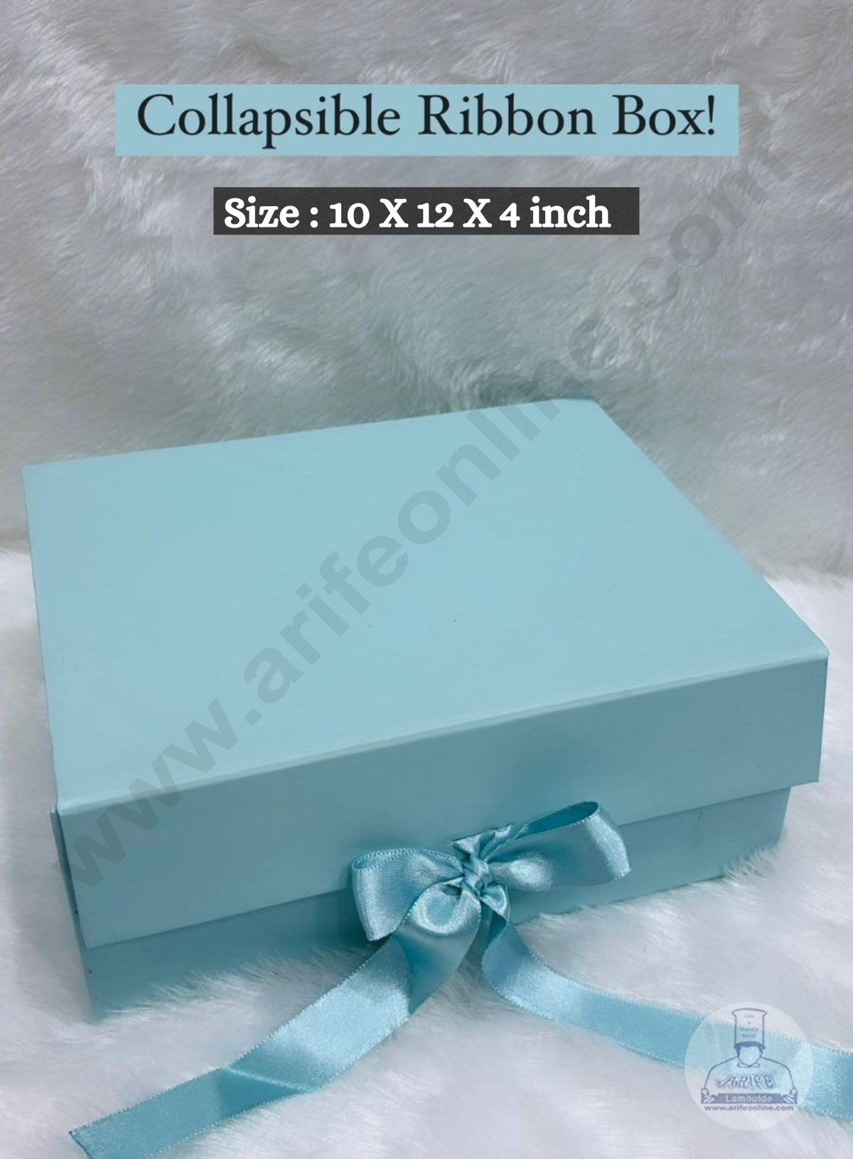 CAKE DECORβ’ Sky Blue Color Folding Hard Hamper Box with ribbon | 10X12X4 Inch | Gift Box | Present Box – 1 Pc | (SBBX-HFFB-D15)