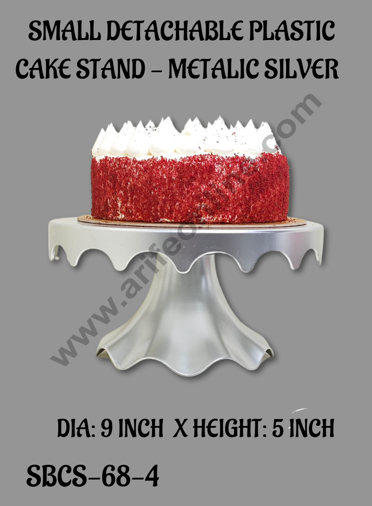 CAKE DECOR™ Small Detachable Plastic Cake Stand Drop Shaped| Cupcake Stand | Display Stand – Metallic Silver