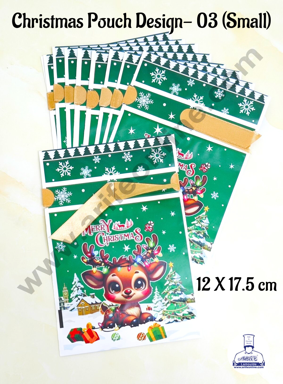Cake Decor β’ SmallΒ Green Color Christmas Theme Cookie pouch Plastic Drawstring Bag Treat With Ribbon | Design – 03 | Pack of 10 | (12cm X 17.5cm) Description: size : 12cm X 17.5cm ~approx Package Including: 10 pcs Pretty design of Christmas Theme with a nice Golden ribbon for decoration,It is different and unique. High…