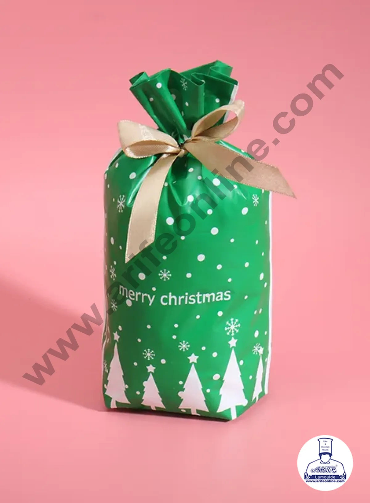 Cake Decor β’ SmallΒ Green Color Christmas Theme Cookie pouch Plastic Drawstring Bag Treat With Ribbon | Design – 09 | Pack of 10 | (12cm X 17.5cm) Small Description: size : 12cm X 17.5cm ~approx Package Including: 10 pcs Pretty design of Christmas Theme with a nice Golden ribbon for decoration,It is different and unique.…