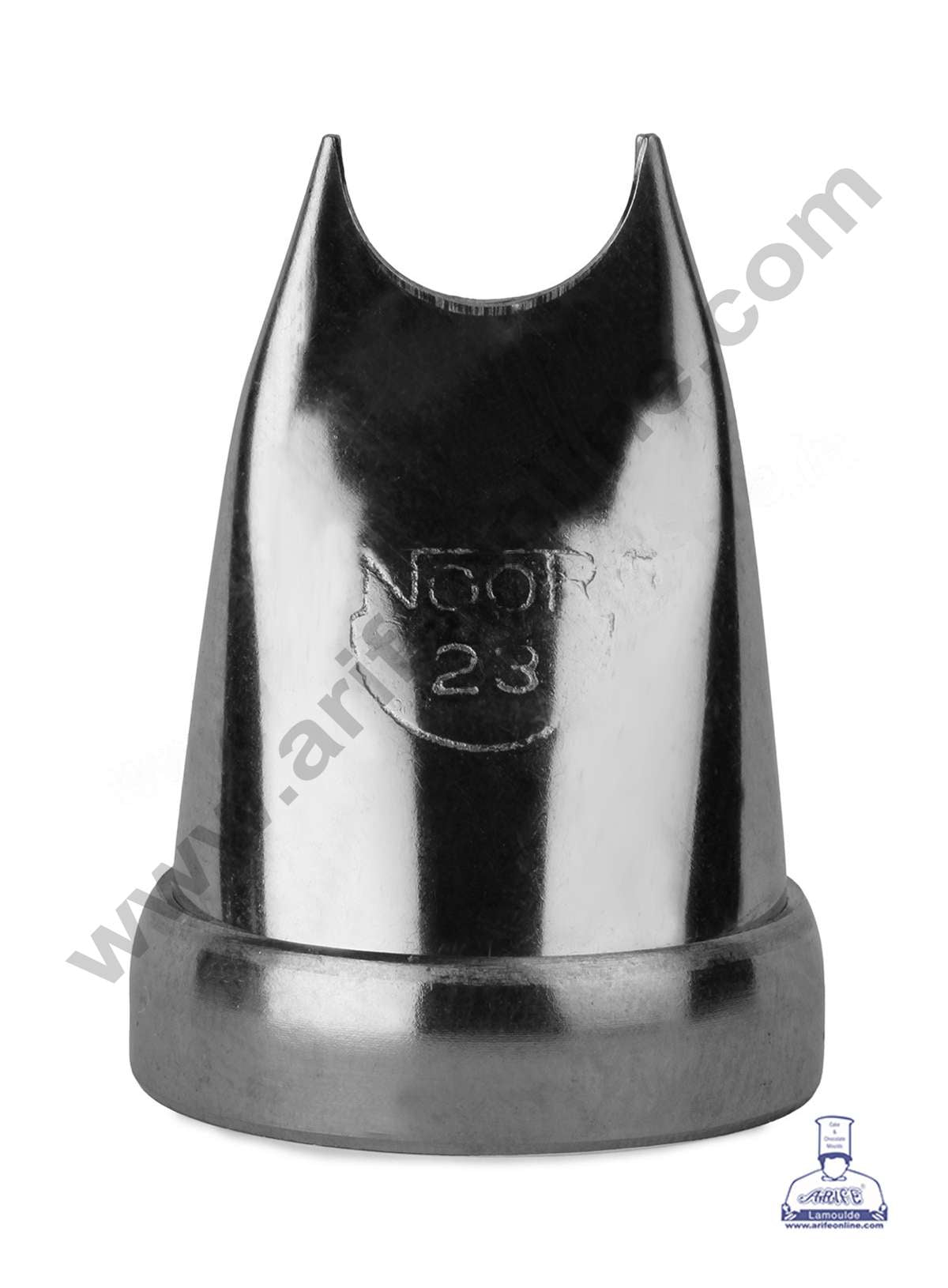 CAKE DECORβ’ Small Noor Nozzle – No. 23 Raised Band Wide Design Piping Nozzle with Collar Ring Use these classic Wide Band tips to create elegant shells, flowers, fleur-de-lys, rosettes and swirls accented with deep, dramatic grooves. We offer the tips in assorted sizes, so you can create effects that suit the scale of your…