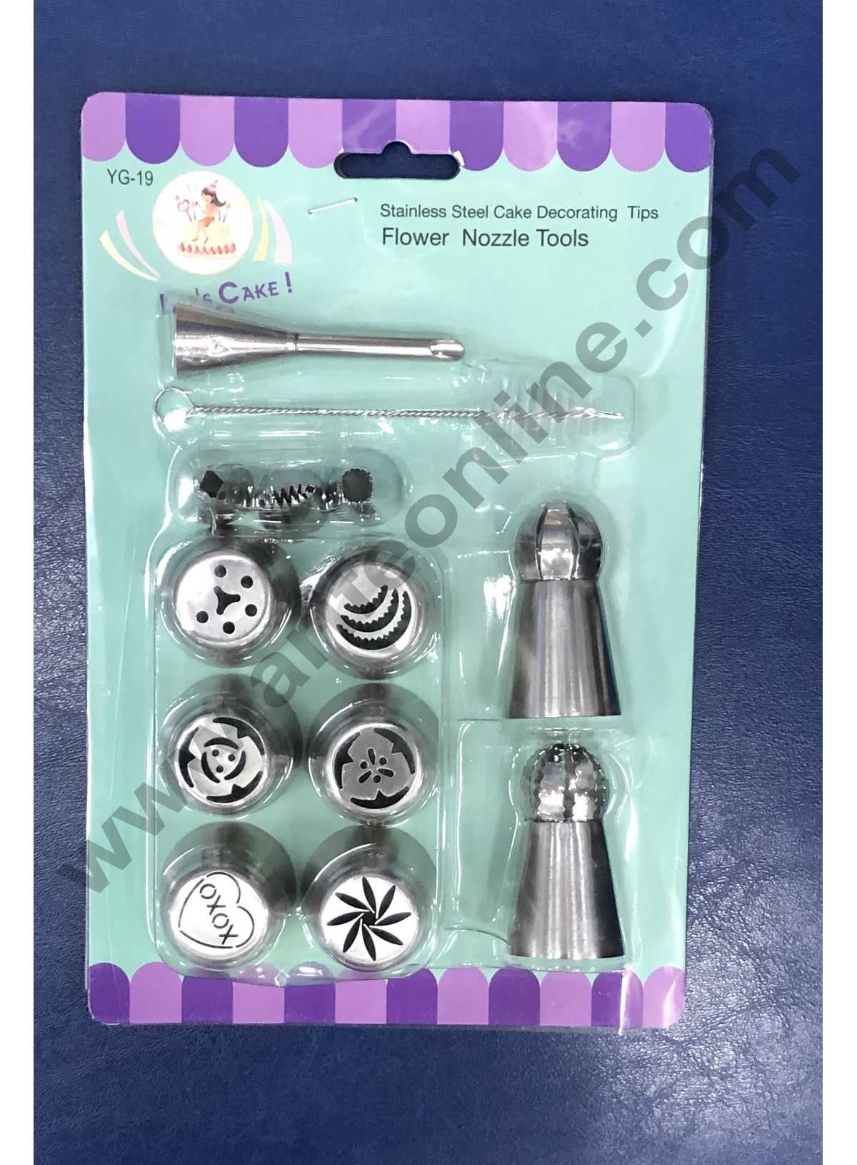 Cake Decor Stainless Steel Nozzle Russian Nozzle + Ball-tip Nozzle With Brush Set (Set of 13pcs)