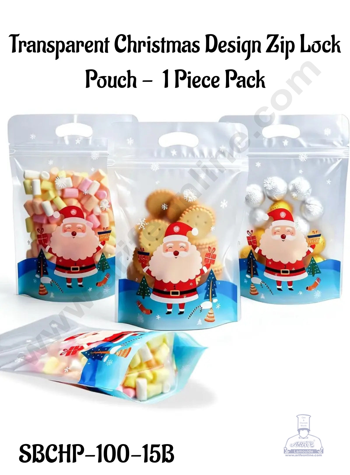 CAKE DECORβ’ Transparent Christmas Design Zip Lock Pouch – 1 Piece Pack – 15.5×22.5×3.5 cm (SBCHP-100-15B)