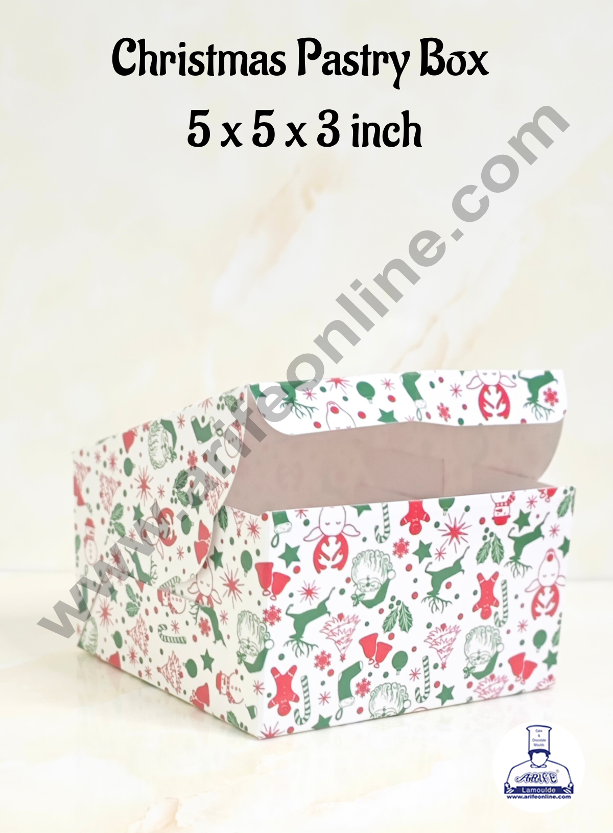 CAKE DECOR™ White Christmas Design Pastry Box – 5x5x3( Pack of 10 Pcs )