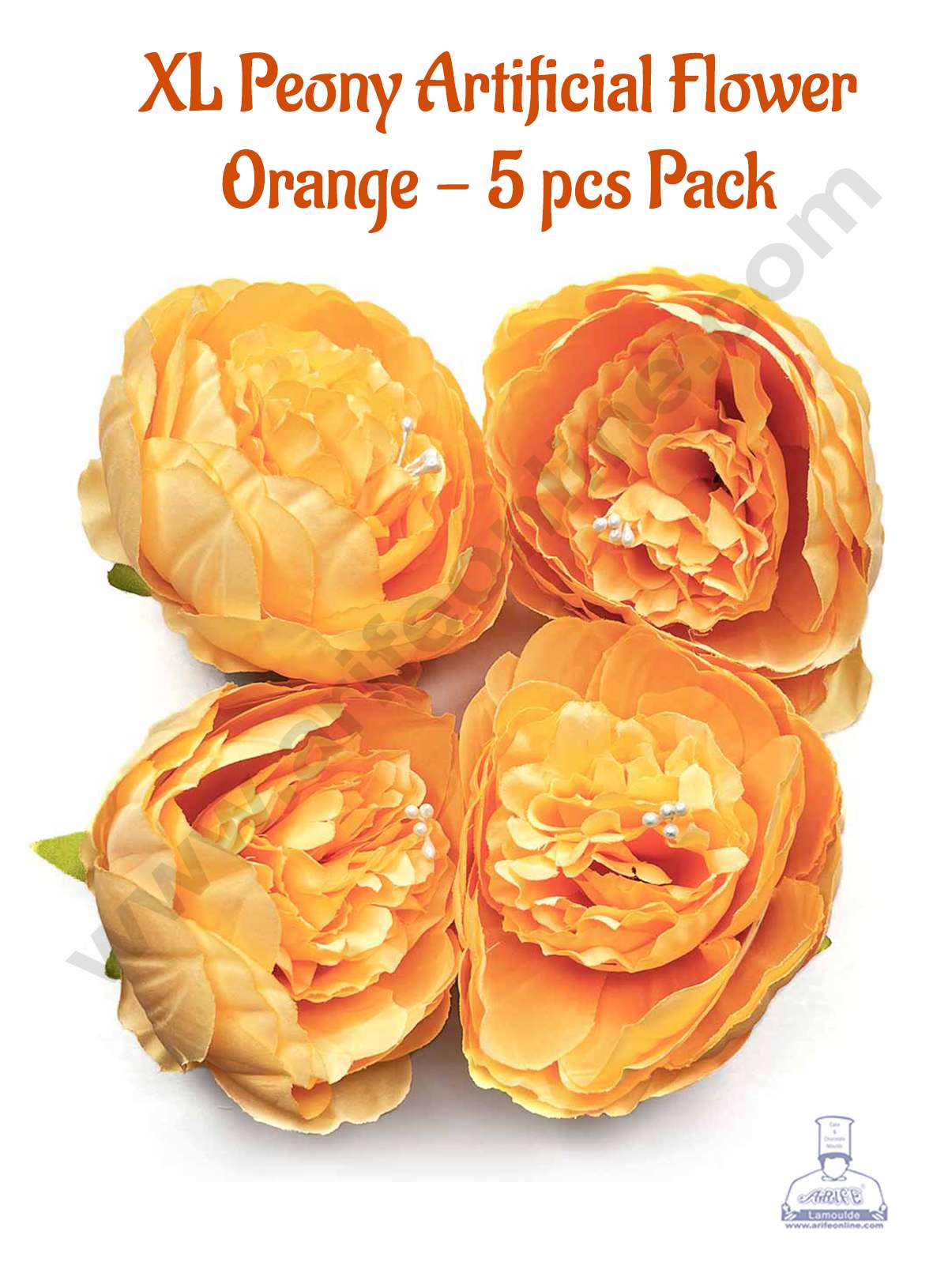 CAKE DECOR™ XL Peony Artificial Flower For Cake Decoration – Orange ( 5 pc pack )