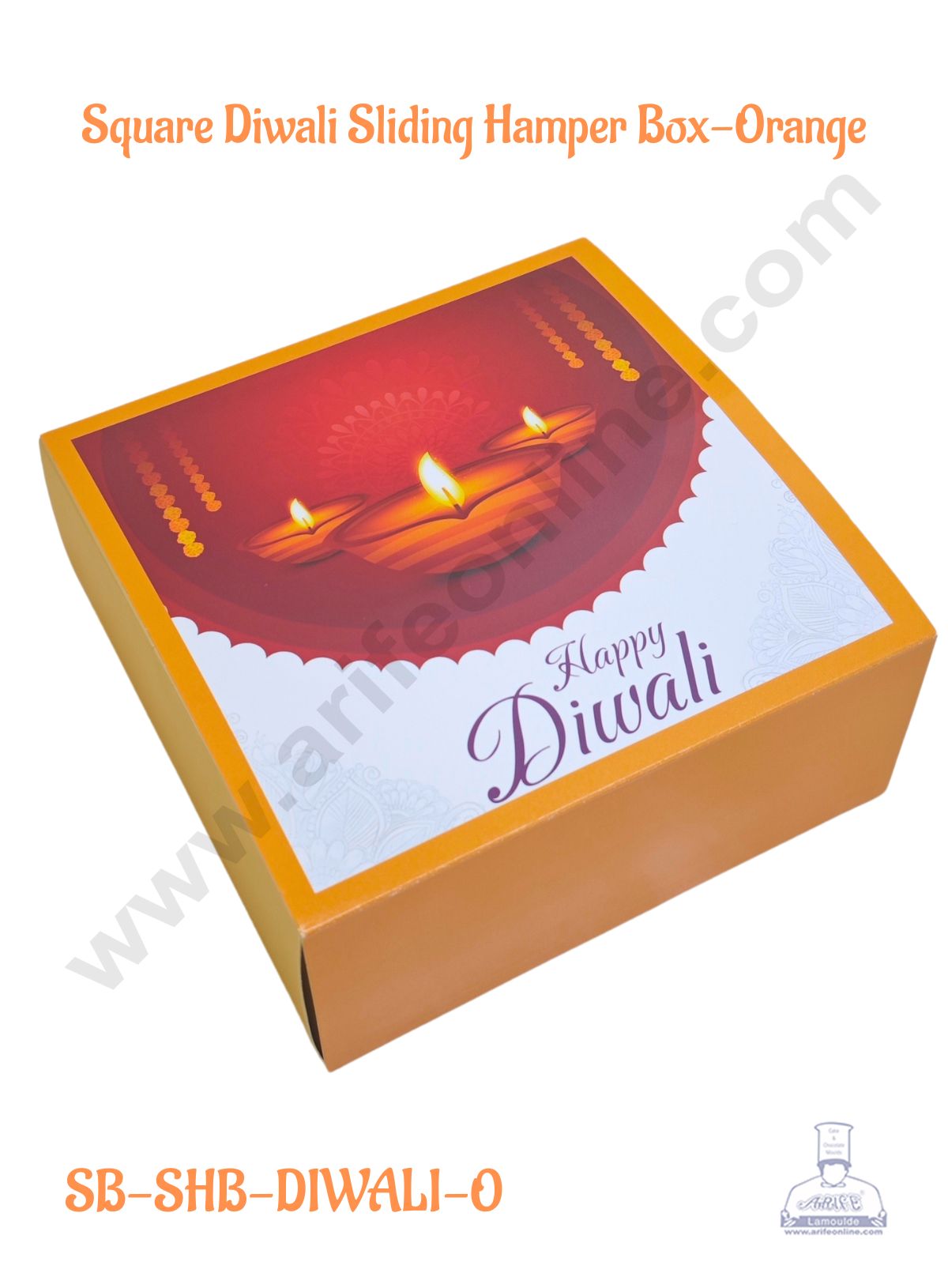 Be the first to review “Diwali Sliding Hamper Box (7 x 7 x 3 inches) – Orange (10 Pcs Pack) – CAKE DECOR™”