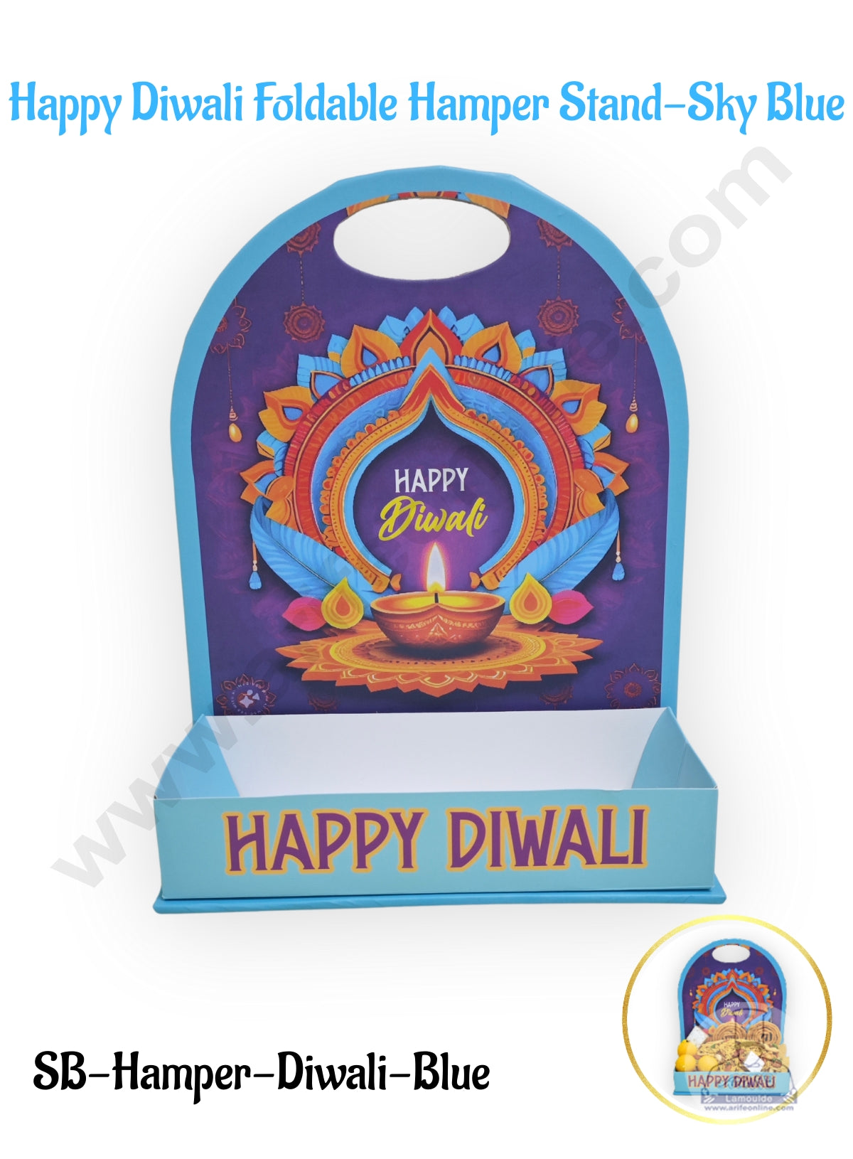 Happy Diwali Foldable Hamper Stand -Sky Blue- 1Pc- CAKE DECOR™