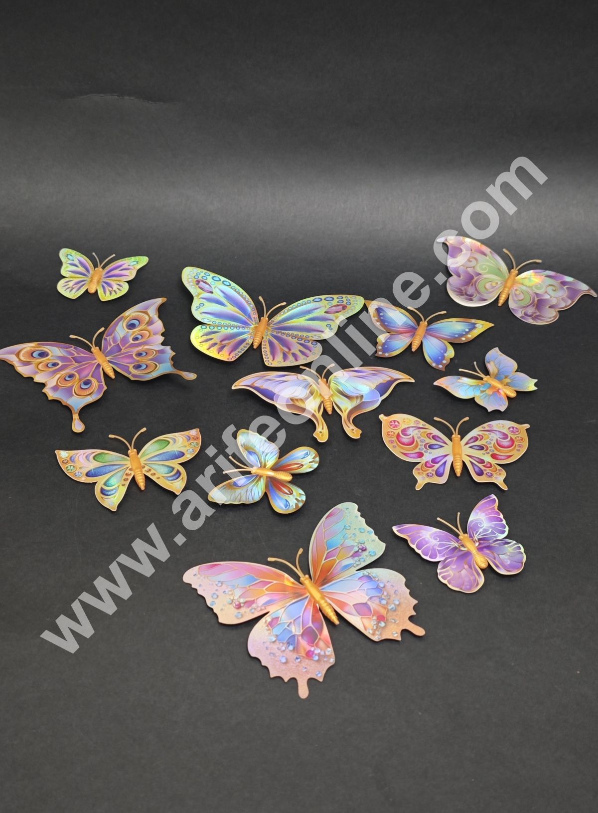 CAKE DECORβ’ Holographic Golden 3D Magnetic Butterfly Cake ToppersΒ | Hamper Decor β Set of 12 (Design 4)