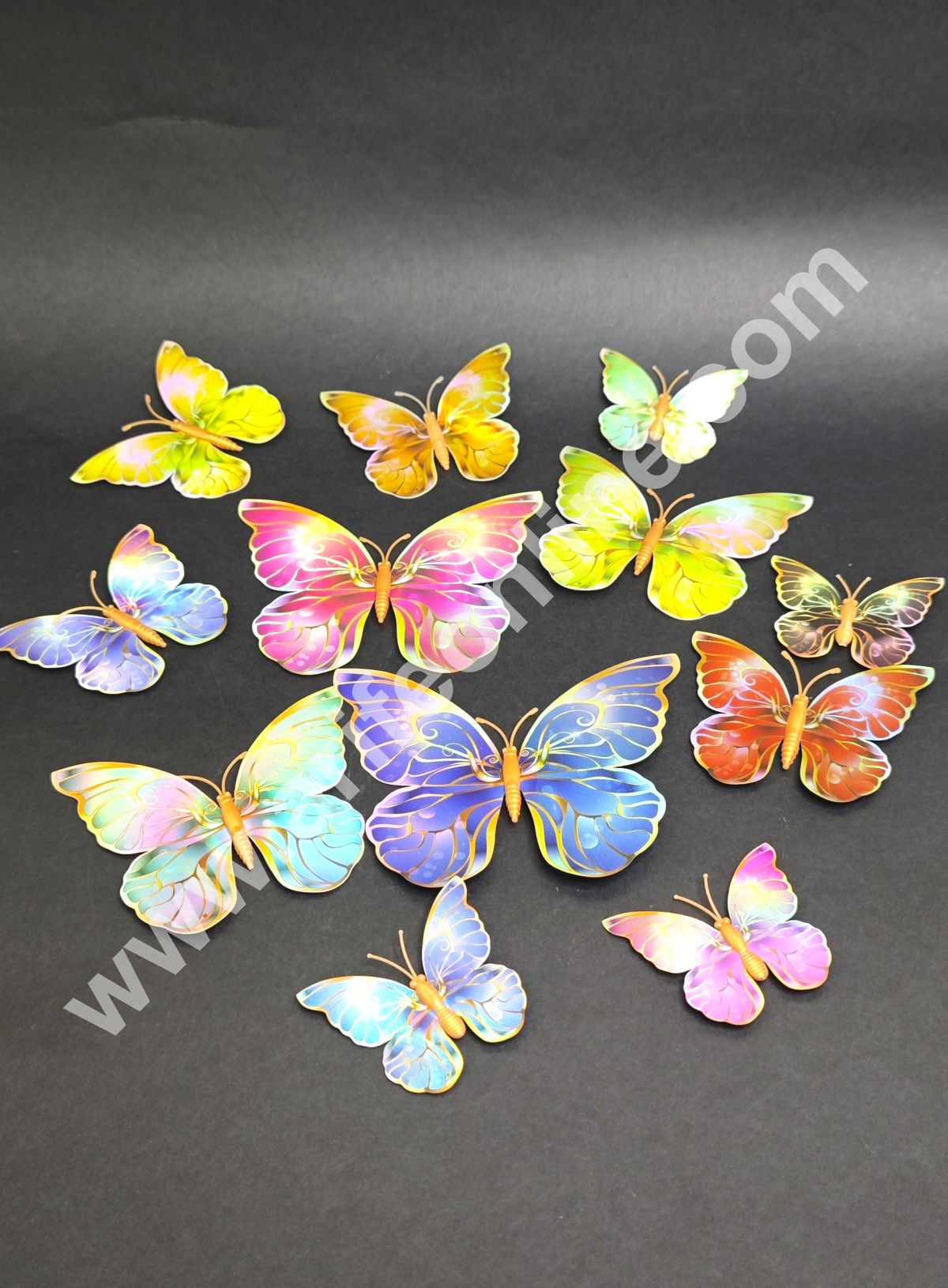 Holographic Multicolor 3D Magnetic Butterfly Cake Toppers | Hamper Decor β Set of 12 (Design 5 ) – CAKE DECORβ’