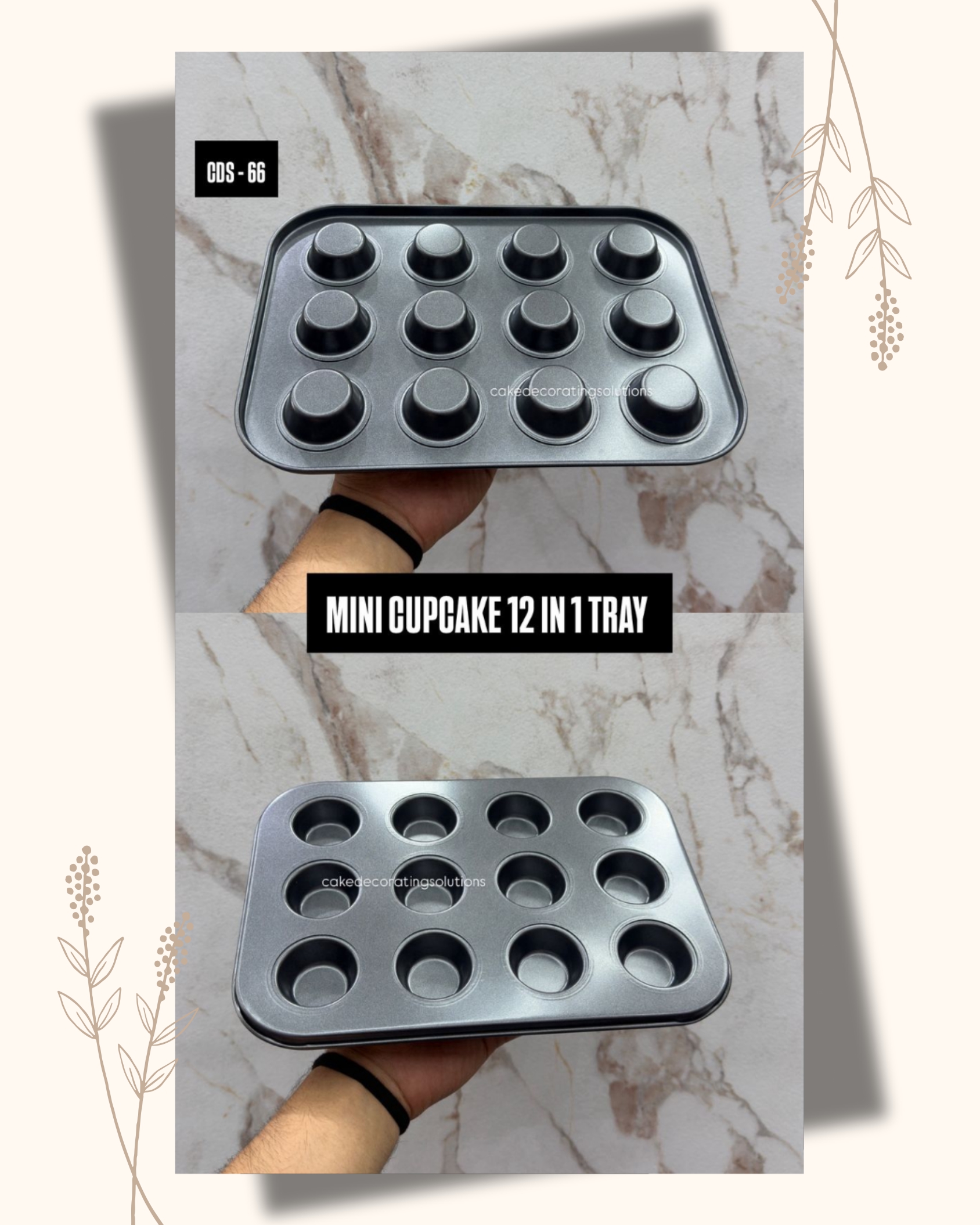 CAKE DECORATING SOLUTION Non Stick 12-in-1 Mini Cup Cake Tray(CDS-66) Tray Size: 35 x 26 x 2.5 cm ~approximatelyCavity Size: Top Diameter – 3.5 cm | Base Diameter – 2 cm | Height – 2.5 cm ~approximatelyMaterial: Premium Non-Stick Carbon SteelCoating: Food-grade non-stick for easy release Use and Care: Before first use and after every…