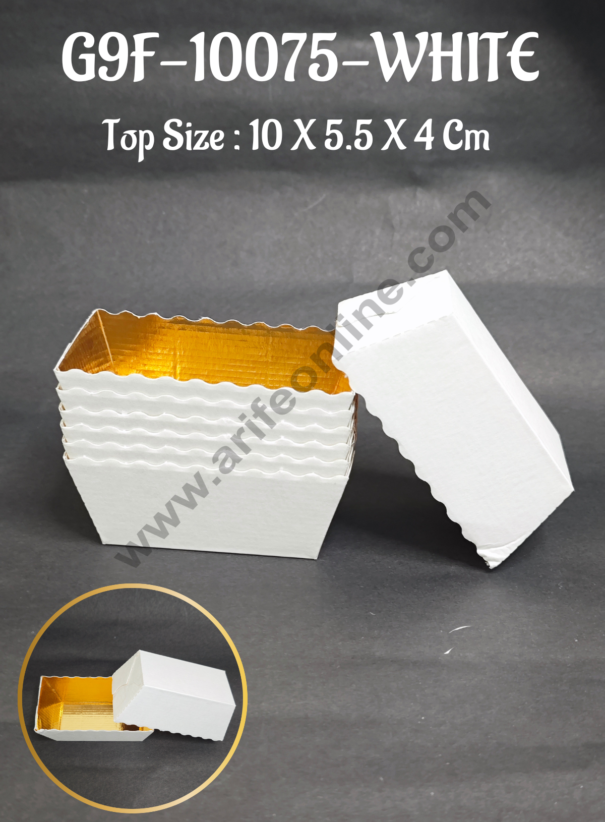 Novacart Bake & Serve Paper Baking Mould By Cake Decor – Mini White Rectangular Loaf Shaped Cake Mould with Golden Lining 10 Pcs ( SB-G9F-10075 )