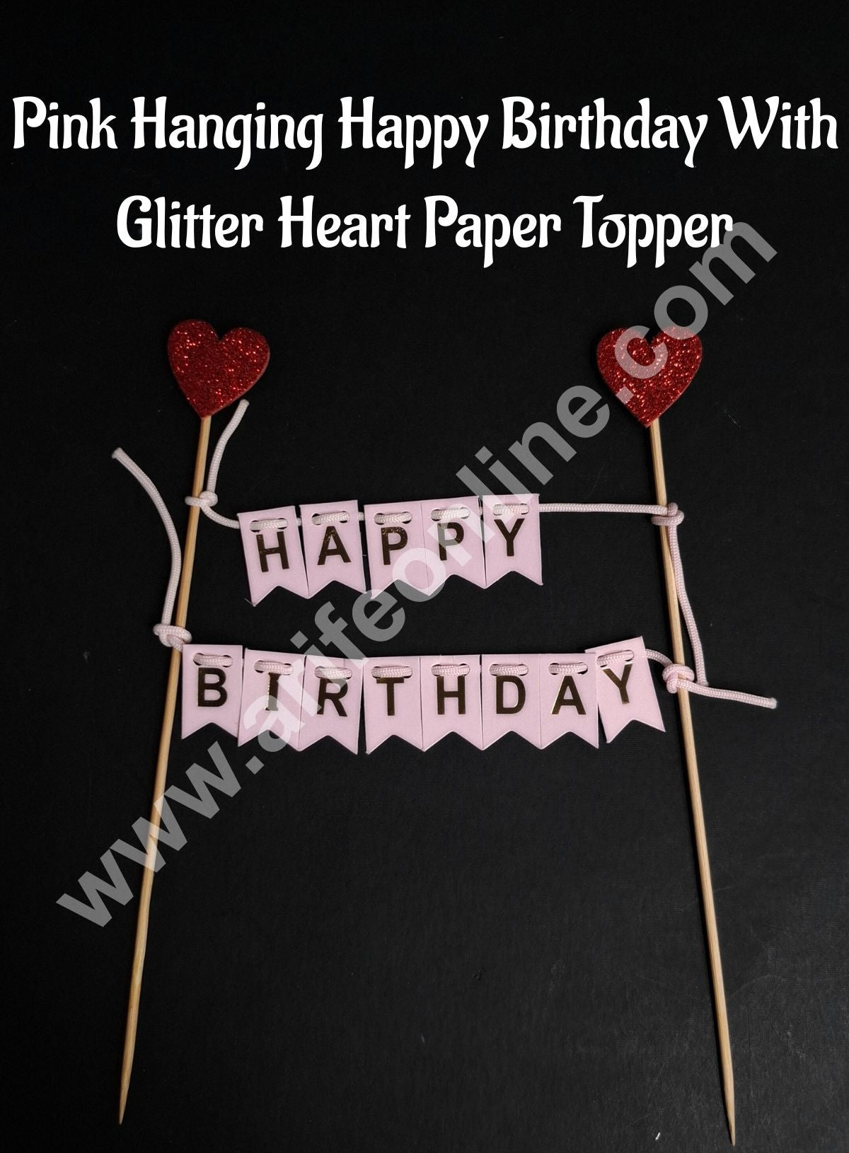 Pink Hanging Happy Birthday With Glitter Heart Paper Topper For Cake( 1pc ) CAKE DECORβ’