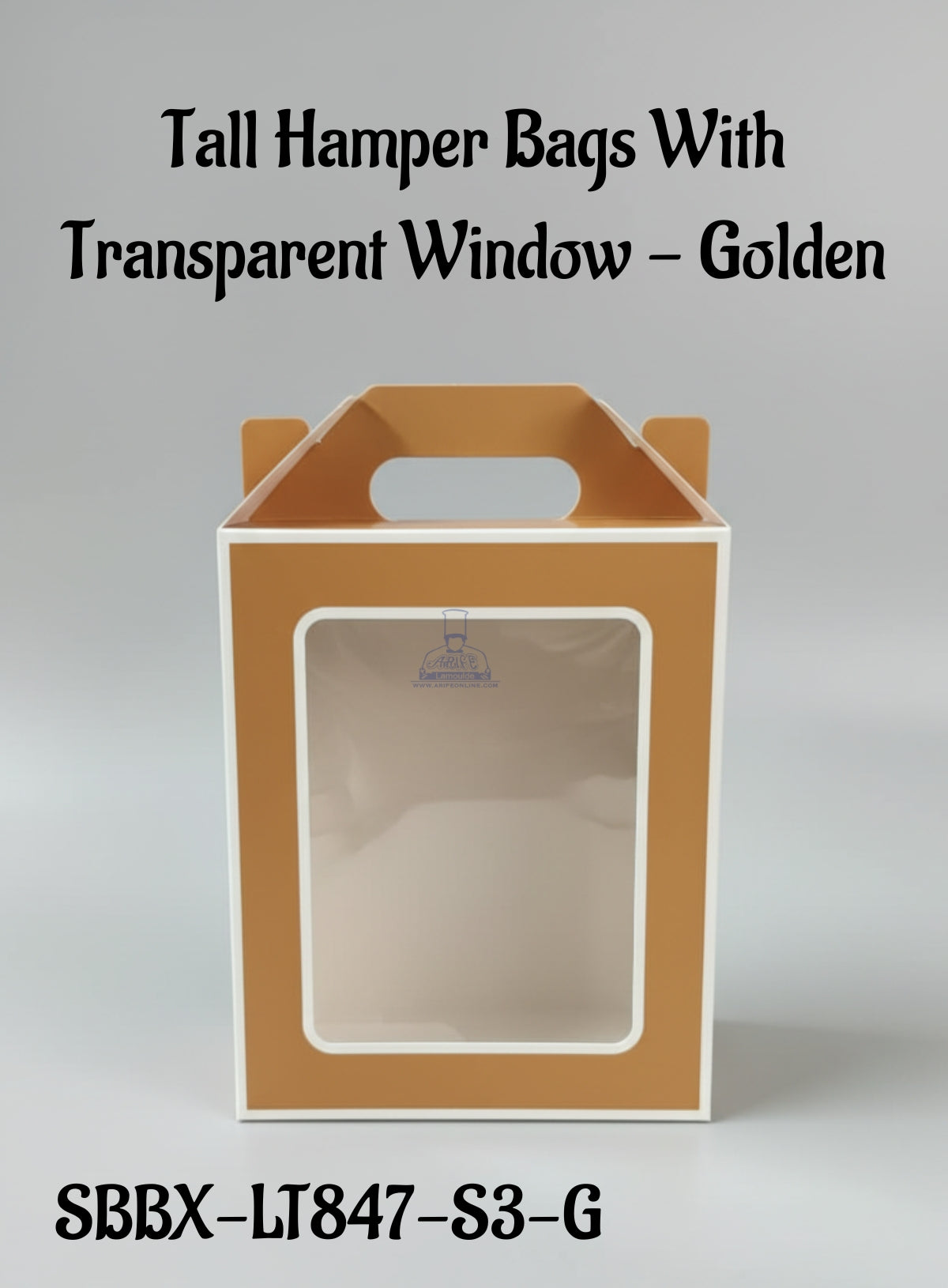 Tall Hamper Bags With Transparent Window – Golden | 18 x 10 x 23 cm | 1 Piece – CAKE DECORβ’