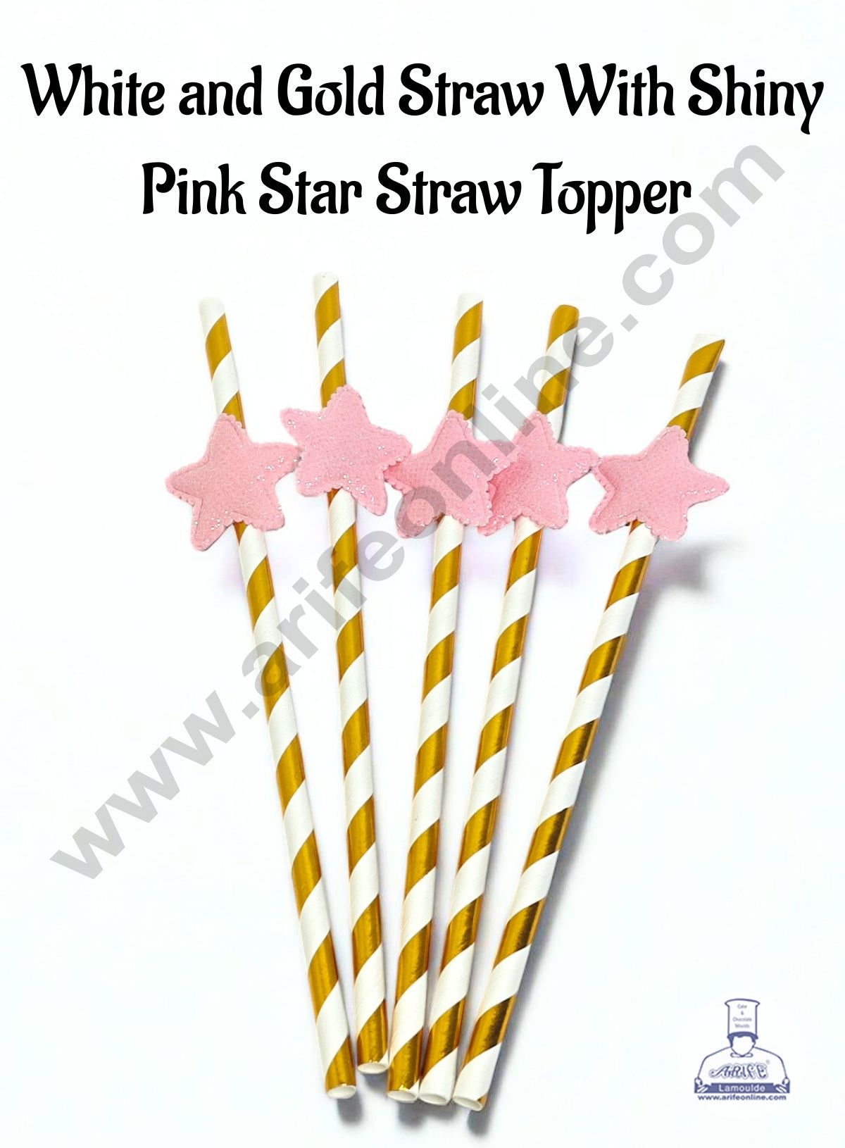 White and Gold Straw With Shiny Pink Star Straw Topper For Cake Decoration – CAKE DECORβ„’